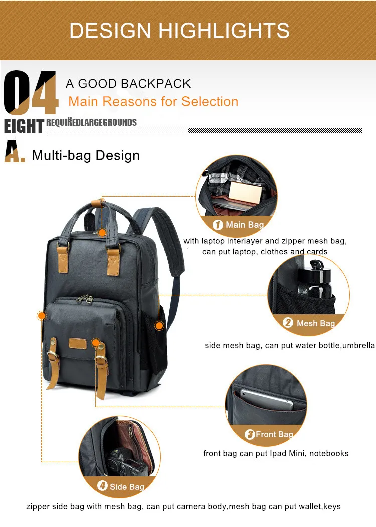 Product Name: プロのレトロなファッション,防水キャンバス,カメラ,写真,三脚,バックパック,ニコン