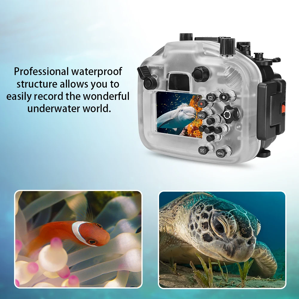 Product Name: Seafrogs 40メートル/130ftキヤノンeos用の水中カメラハウジングM5 18-55ミリメートルレンズ防水水中ダイビングカメラハウジングケース