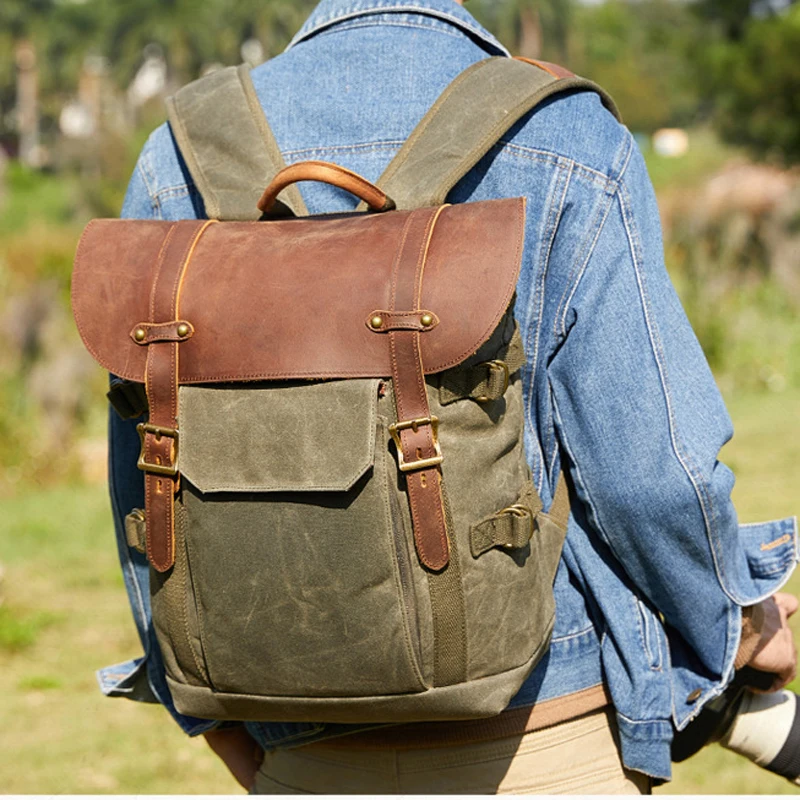 Special Offer ヴィンテージキャンバスレザーノートパソコンのバックパック男性スクールバッグ 15.6 "防水旅行カメラリュックサック Discount (21%OFF) Today!