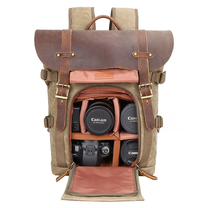 Product Name: バティック防水キャンバスカメラ写真屋外ポータブルスクラッチプルーフデジタル一眼レフビデオバックパック男性バッグフィット 15in ラップトップキヤノンニコン
