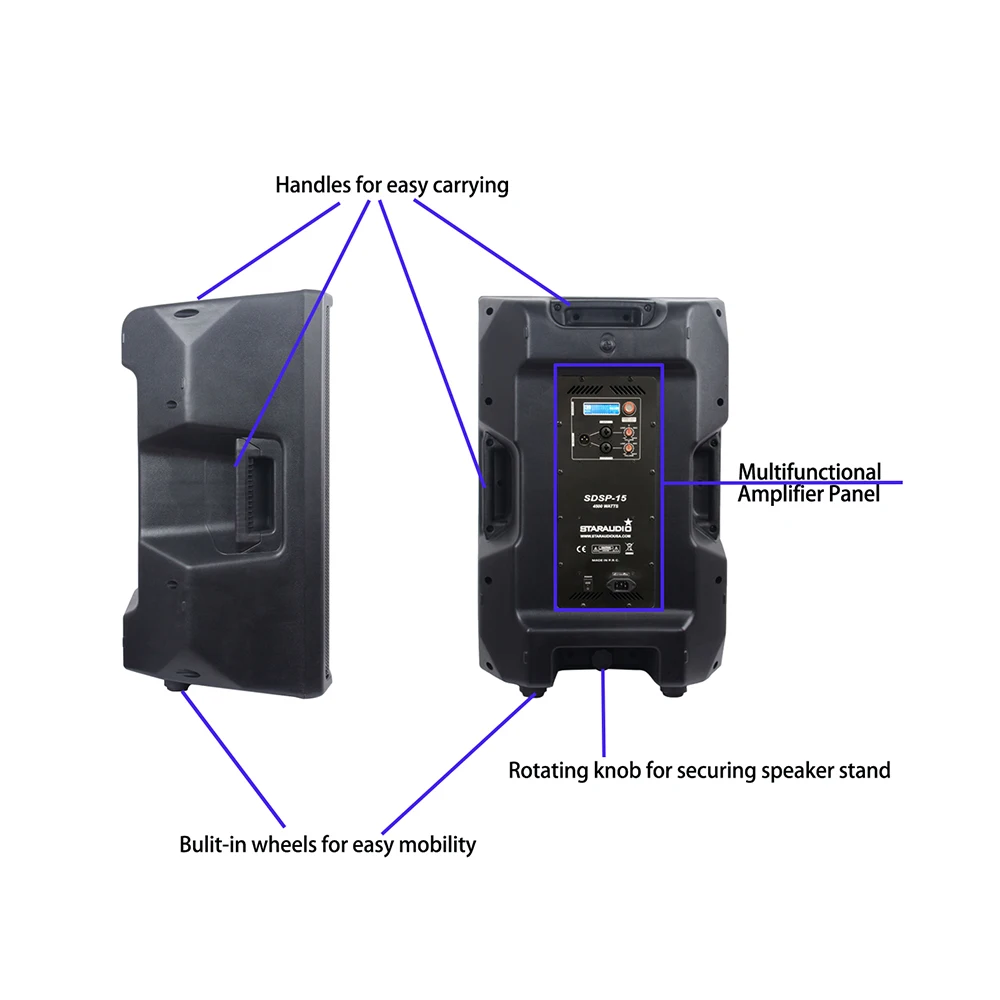 Product Name: 15 "4500ワット駆動paカラオケdj Dspアクティブステージスピーカーシステム2チャンネルuhfワイヤレスSDSP-15 + SMU-0216A