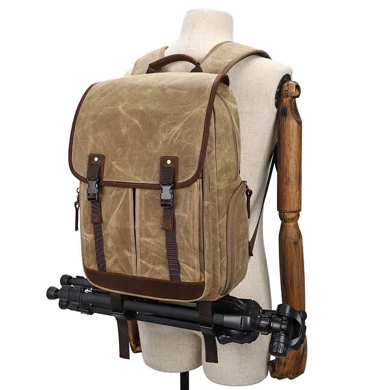 Special Offer 写真カメラ防水バティックキャンバス肩バックパックフィット 13 "ラップトップ男性女性旅行屋外デジタル一眼レフ運ぶ三脚ビデオバッグ Discount (10%OFF) Today!