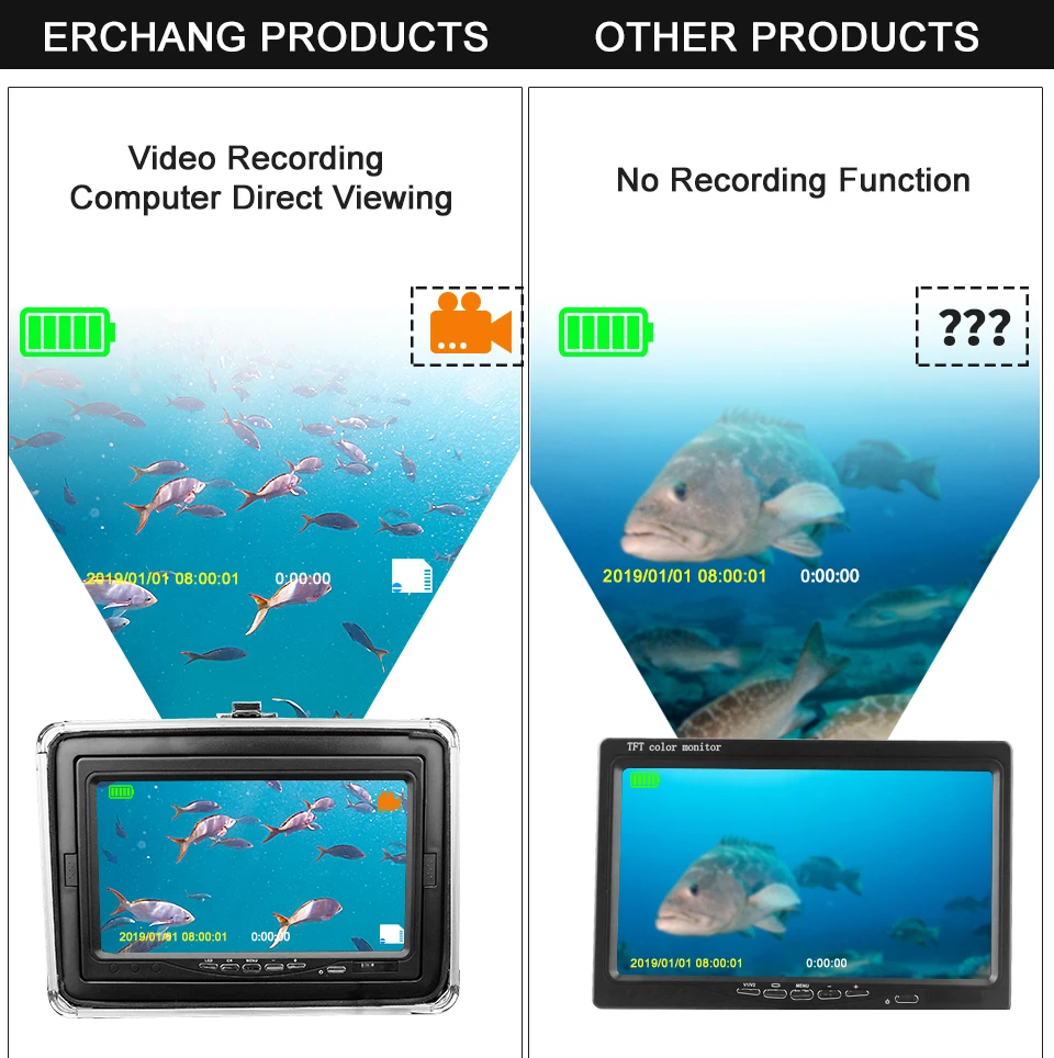 Product Name: 魚探水中釣りカメラ HD スクリーン 12 個の白色 Led + 12 個赤外線カメラのための送料無料で電話防水バッグ